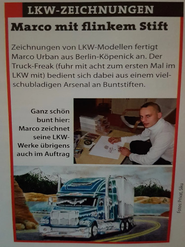 Seit ich einen Stift halten konnte, begleitet mich das Malen. Doch als ich mit acht Jahren das erste Mal in einem Truck mitfahren durfte, entdeckte ich meine große Leidenschaft – Trucks wurden zu meinem Lieblingsmotiv. Diese Faszination hat mich nie losgelassen. Heute stehe ich selbst hinter dem Steuer, und jedes meiner Werke trägt ein Stück dieser Begeisterung in sich.